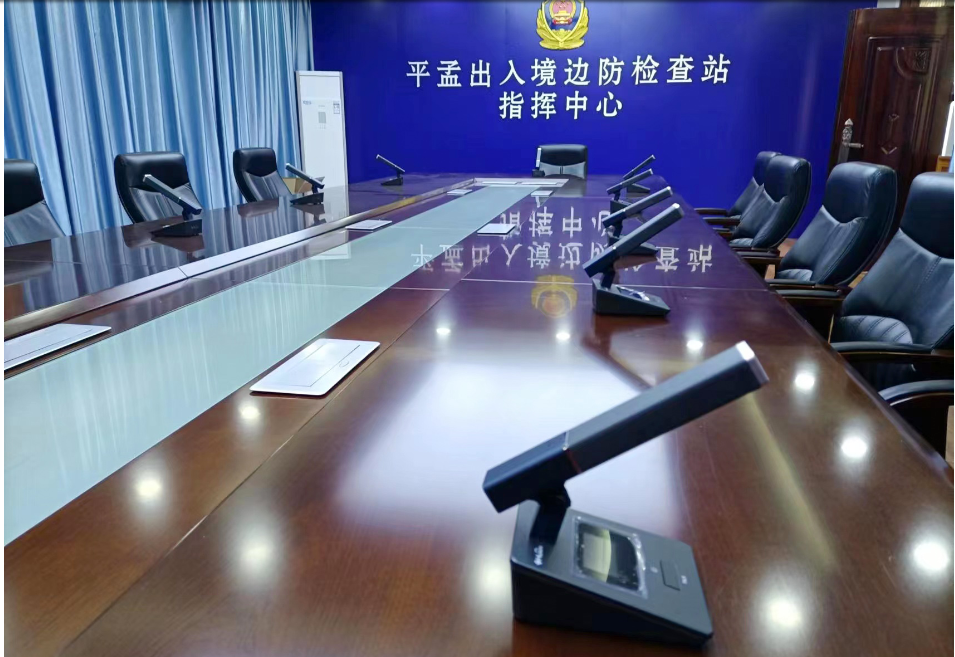 廣西平孟出入境邊防檢查站指揮中心采用HUAIN華音無(wú)線(xiàn)雙振膜會(huì)議系統(tǒng)(HY-U5880系列)搭配可視化管理系統(tǒng)、中央控制系統(tǒng)、擴(kuò)聲系統(tǒng)等會(huì)議系統(tǒng)來(lái)推動(dòng)智慧檢查站建設(shè)。
