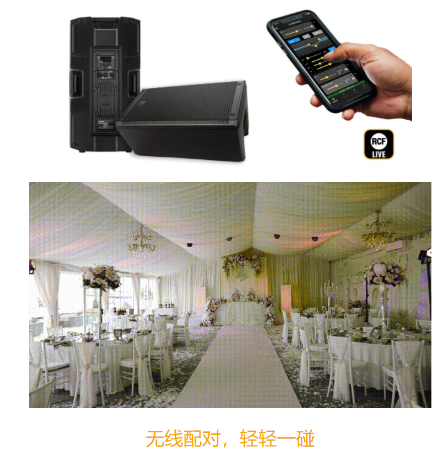 借助RCF超低音揚聲器的內部現成預設,音響系統可以完美校準,只需幾個步驟即可開始運行。