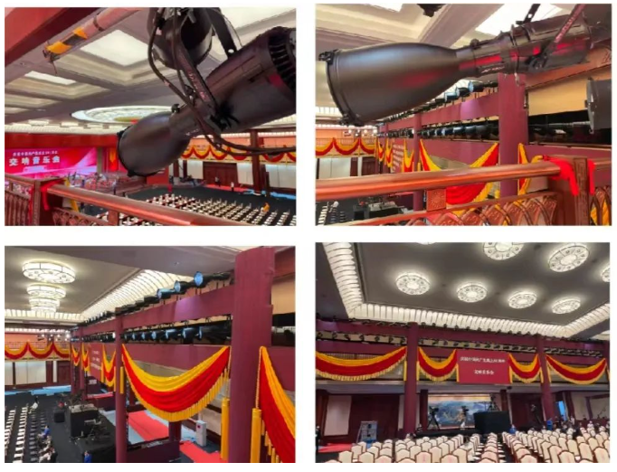 本次演出采用LED光源燈具,共計(jì)118臺(tái),其中5度LED成像燈82臺(tái)、LED切割電腦燈8臺(tái)、LED平板燈10臺(tái)、LED四眼燈14支、LED搖頭電腦燈4臺(tái)。袁京男表示,依據(jù)前期燈具選型定制化參數(shù),選用了廣州鑫皇實(shí)業(yè)有限公司(以下簡(jiǎn)稱:鑫皇實(shí)業(yè))的12臺(tái)全光普成像燈參數(shù)XH-J18-05K和70臺(tái)成像燈XH-17-05A,兩款燈具完全滿足音樂(lè)會(huì)對(duì)舞臺(tái)燈光照度、色度、顯色性等硬性需求,舞臺(tái)面光特意選擇了靜音款LED成像燈XH-17-05A,該產(chǎn)品具有靜音、投射距離遠(yuǎn)、物理切扉、高色溫、線性調(diào)光、顯色指數(shù)高(Ra≥95 )等特色,其出色的表現(xiàn)為本次音樂(lè)會(huì)錦上添花。