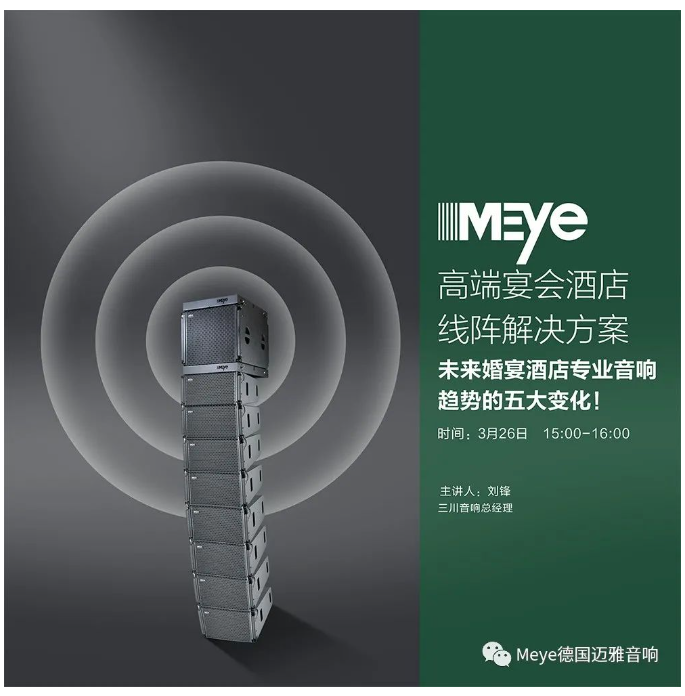 近年來,Meye音響專注于五星級酒店、 高端婚慶主題宴會酒店、高端婚禮藝術(shù)中心領(lǐng)域,打造標(biāo)桿化、系統(tǒng)化、高效化的專業(yè)擴(kuò)音系統(tǒng),已經(jīng)成為中國宴會酒店音響知名品牌。